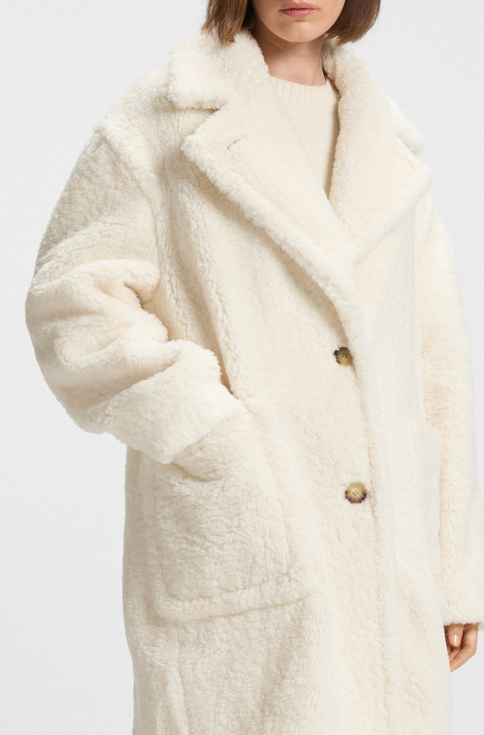 Realizzato in morbido peluche con fodera interna in jacquard con logo, questo cappotto BOSS Donna ti assicura il massimo comfort in inverno. Il colletto può essere indossato su o giù.