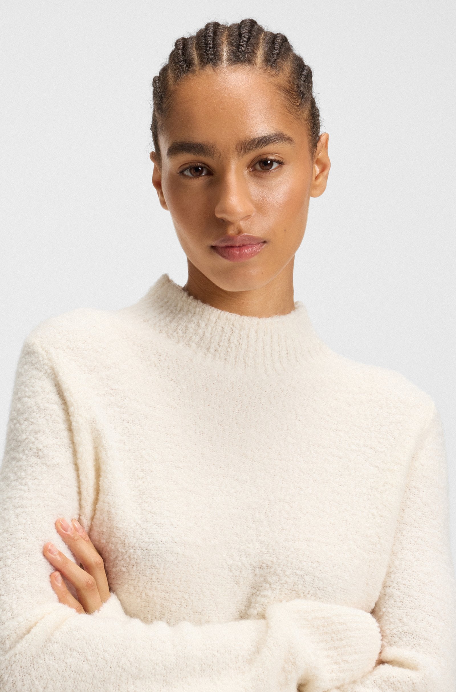 Indossa questo maglione BOSS Donna per un’eleganza sofisticata con la morbidissima e resistente maglia bouclé. Con lana e cashmere. Profilo con colletto turn down. Questo prodotto contiene almeno il 60% di materie prime di qualità superiore. Questo prodotto è realizzato con lana proveniente da allevamenti responsabili. Per noi, essere un allevamento responsabile significa essere mulesing-free e rispettare gli standard previsti dalle Cinque libertà per la tutela degli animali.