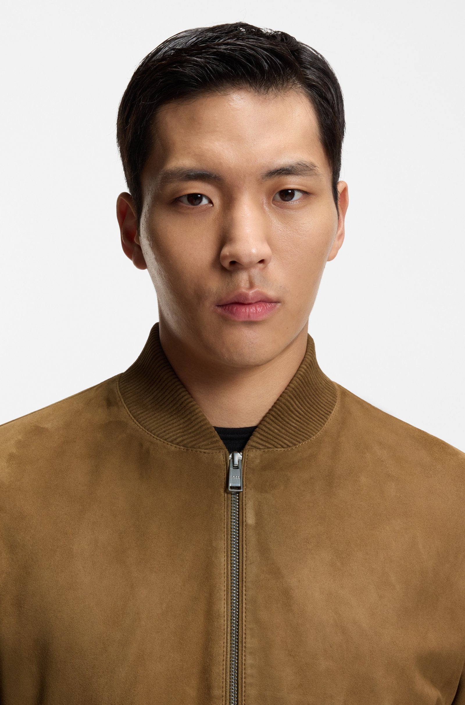 Con finiture stile bomber, questo giubbotto BOSS Uomo è realizzato in pelle scamosciata per un tocco morbido. Vestibilità straight fit con zip frontale. Questo prodotto contiene almeno l'80% di materie prime di qualità superiore. La pelle usata per realizzare questo prodotto proviene da concerie certificate Gold dal Leather Working Group.