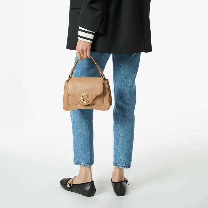 Una nuova signature entra a far parte del brand, Coccinelle C-Me. Il logo reinterpretato attraverso la C di Coccinelle che si annoda e abbraccia il plettro, elemento iconico del brand, un'unione che si intreccia con la vita di una donna tra passato e presente. Le linee geometriche e le curve sofisticate rafforzano il design, mentre la costruzione a soffietti aggiunge un tocco di funzionalità e delicata eleganza a questa borsa che vuole essere la compagna essenziale della donna Coccinelle durante la sua giornata. Questo modello è realizzato in pelle lavorata tramite specifici macchinari e poi bottalata al fine di mantenerne la morbidezza. È una pelle molto resistente che si presta a una facile pulizia, ideale per un uso quotidiano.