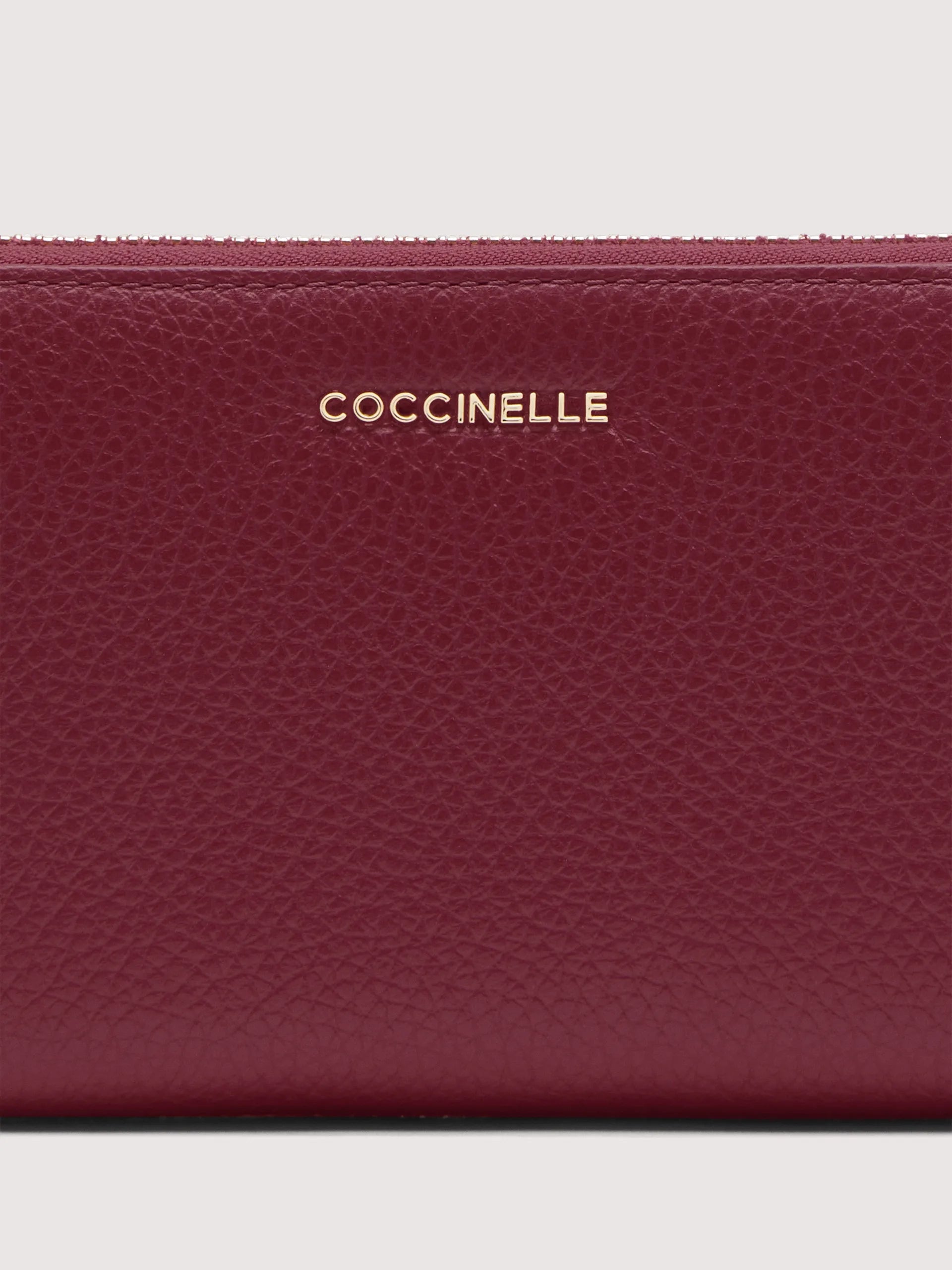 Questo portafoglio con zip della linea Metallic dalle ampie dimensioni è impreziosito dal logo Coccinelle in metallo. Il suo spazio è organizzato al meglio per riporvi il necessario con ordine e cura.