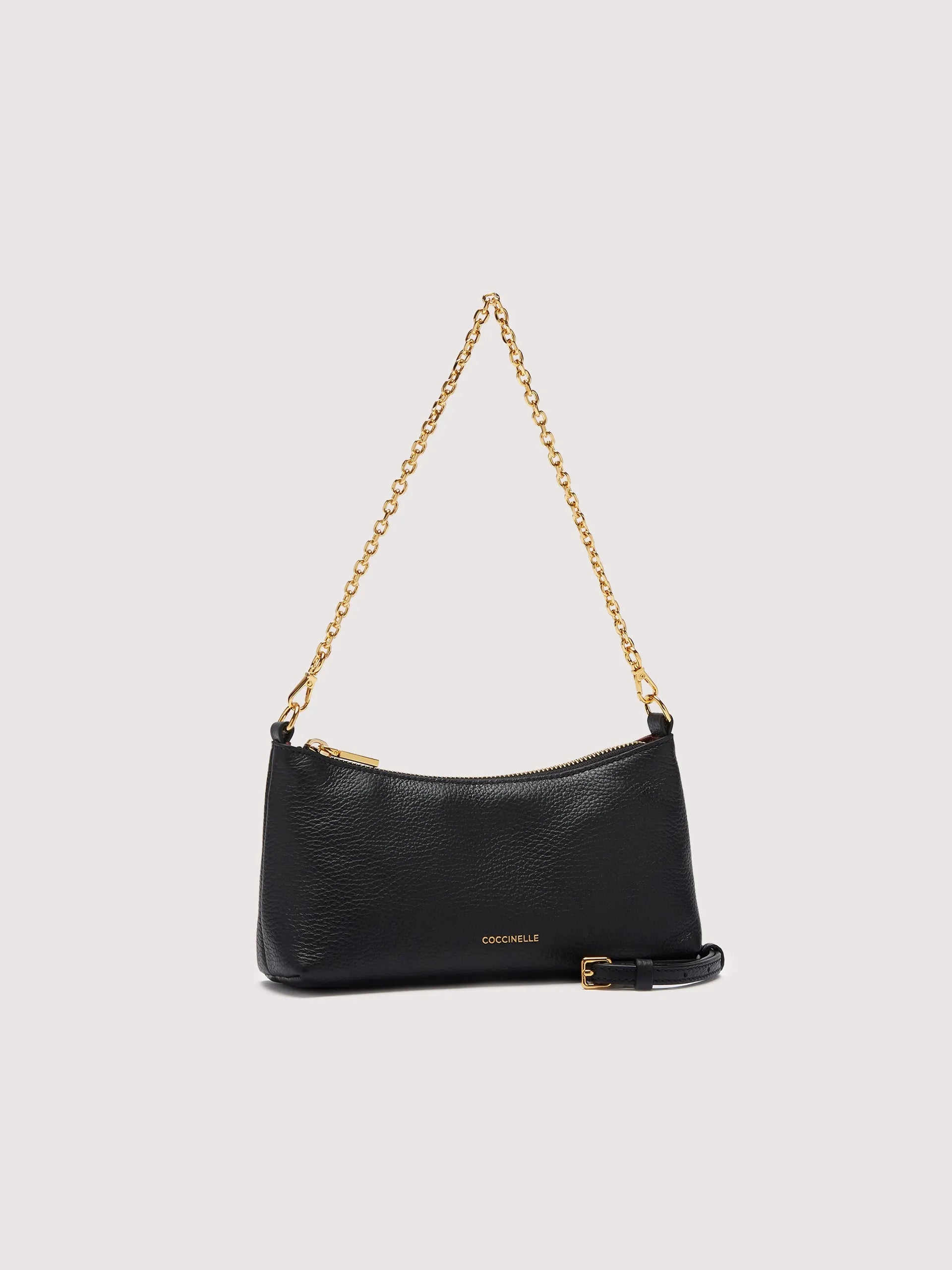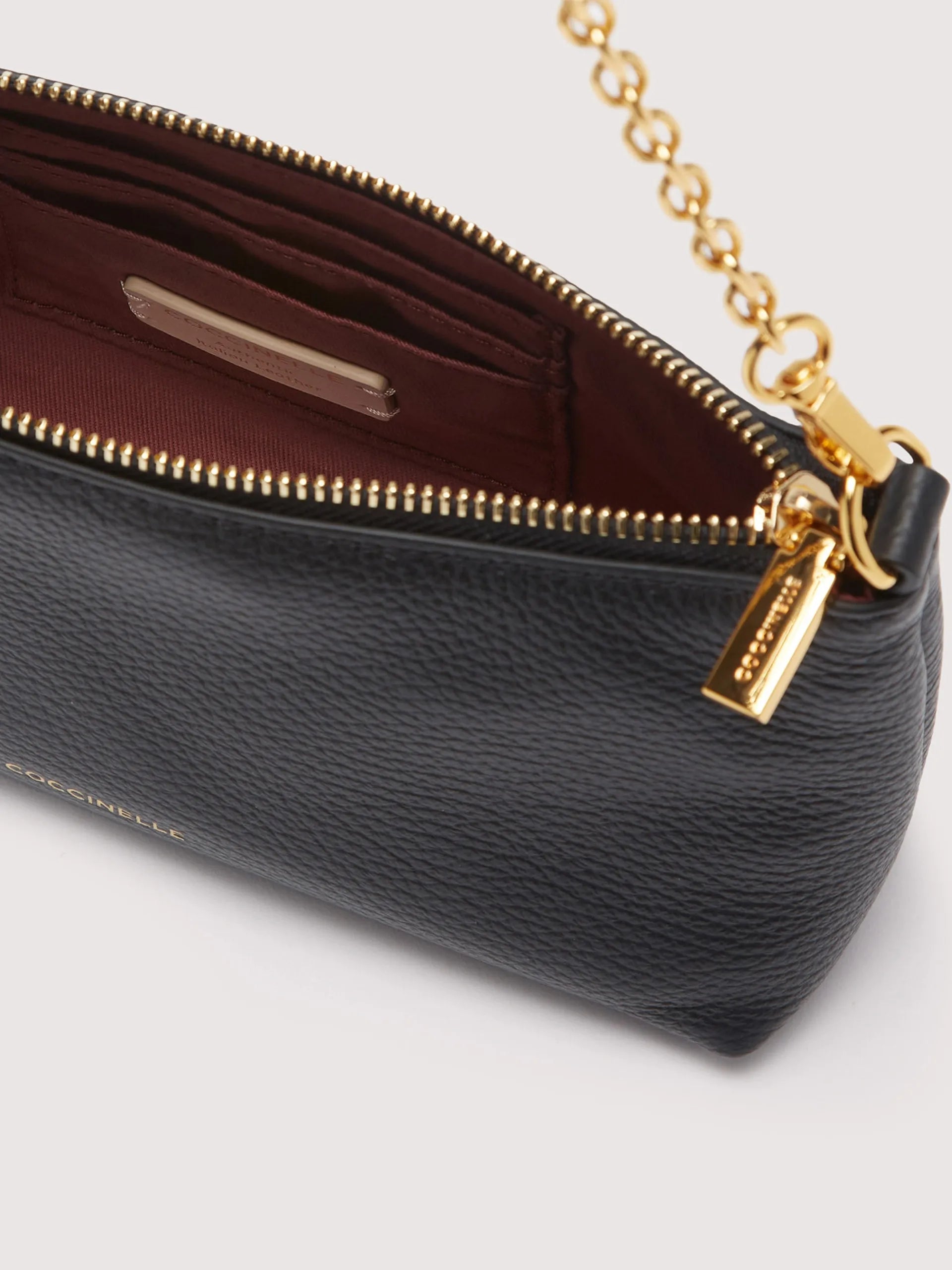 Contemporanea e versatile questa minibag della linea Coccinelle Aura, è pensata per accompagnarti tutti i giorni grazie alla comoda tracolla in pelle, mentre il manico in catena, la rende perfetta anche per un look da sera. Questo modello è realizzato in pelle lavorata tramite specifici macchinari e poi bottalata al fine di mantenerne la morbidezza. È una pelle molto resistente che si presta a una facile pulizia, ideale per un uso quotidiano.