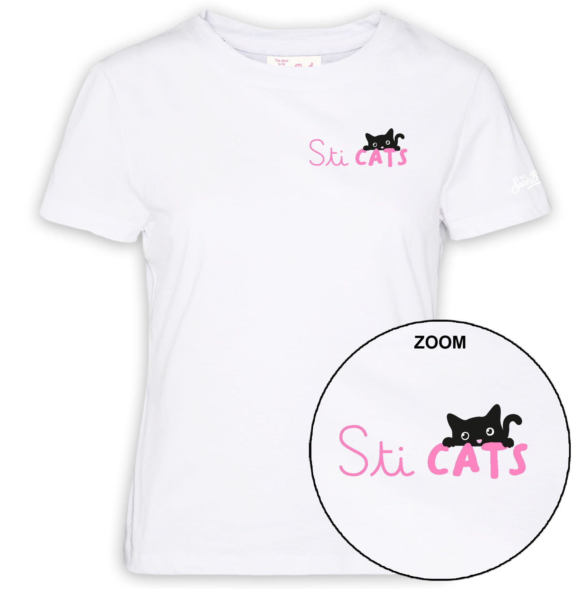 Questa t-shirt girocollo è realizzata in morbido jersey ed è decorata con didascalie iconiche e giocose. Il logo Saint Barth ricamato sulla manica aggiunge un tocco testurizzato e tridimensionale a questa t-shirt di tendenza.