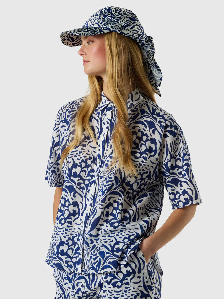 Eleva il guardaroba estivo con questa camicia leggera in mussola di cotone. Il modello si caratterizza per il taglio boxy e l’elegante stampa corallo che celebra la nostra passione per la tutela degli oceani. L’orlo posteriore leggermente più lungo la rende ideale da abbinare agli shorts o da indossare sopra il bikini.