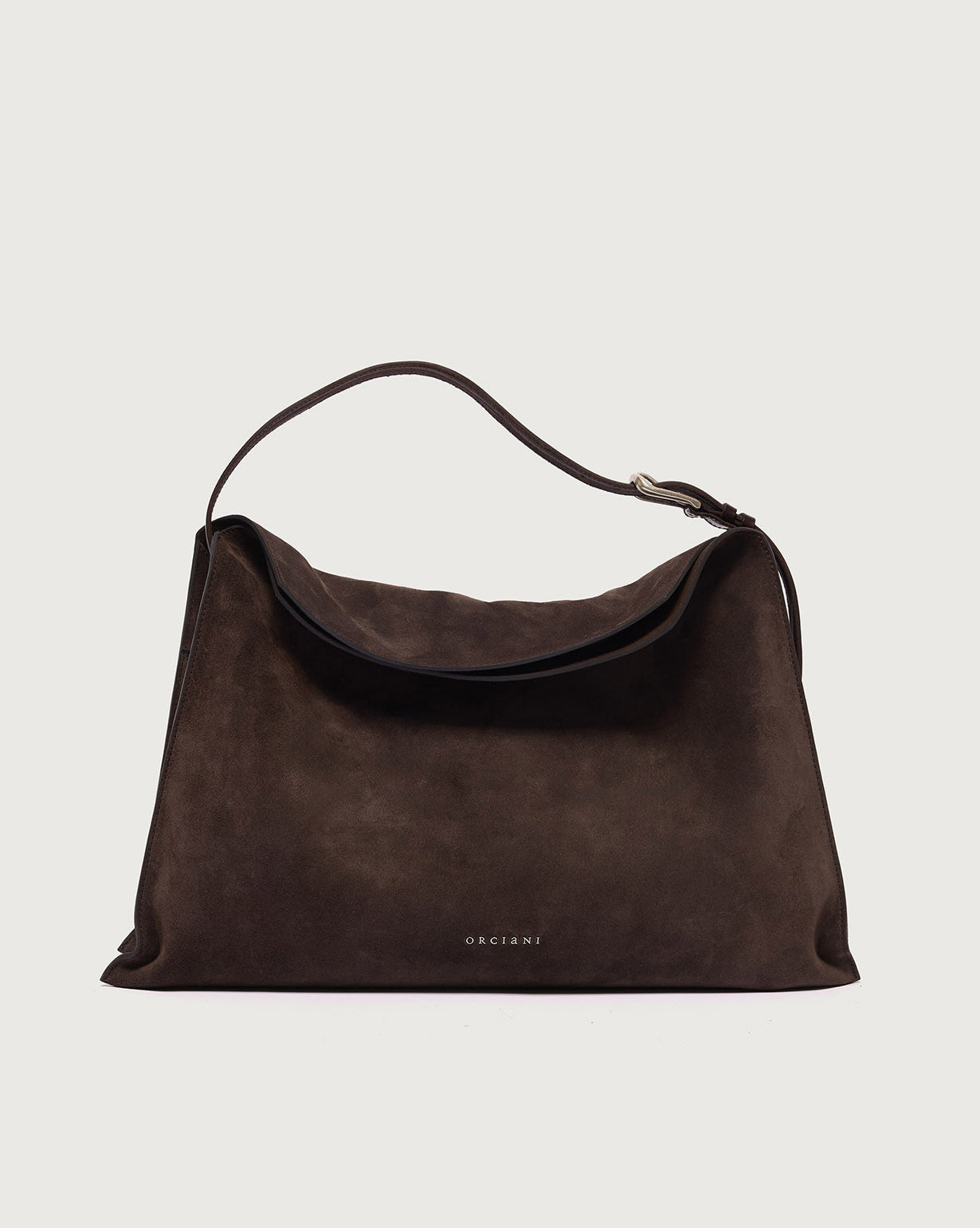 Borsa Trinity Peach Large a spalla in suede e cuoio