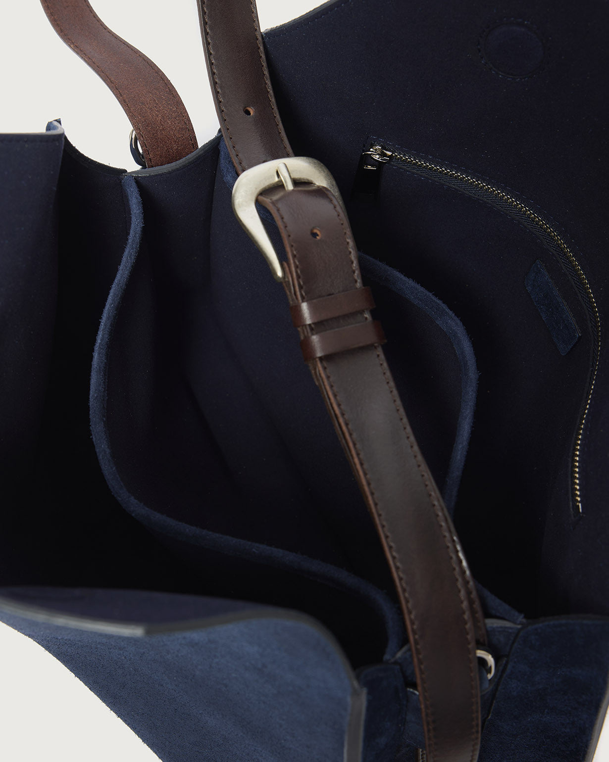 Funzionalità: manico in cuoio con fibbia regolabile e removibile utilizzabile come cintura / tracolla in suede regolabile e removibile