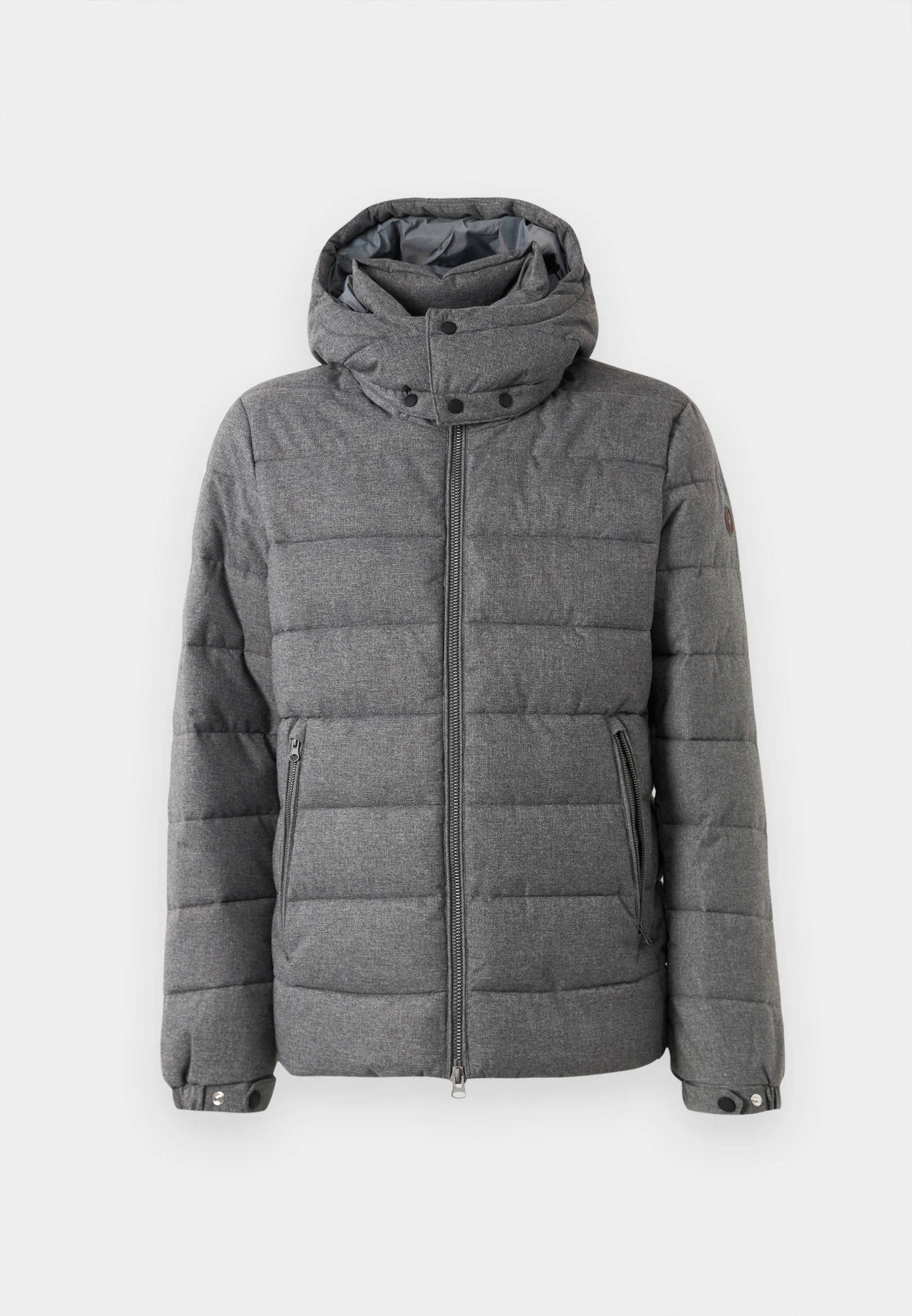 Il piumino uomo modello Constantin introduce nella collezione FW25?26 un nuovo tessuto effetto flanella, morbido come la lana ma interamente in poliestere riciclato. Pensato per il comfort quotidiano, combina cappuccio rimovibile, tasche con zip e imbottitura in RECYCLED PLUMTECH� per una silhouette elegante e funzionale. Completano il design il logo rotondo sulla manica e i tiretti personalizzati
