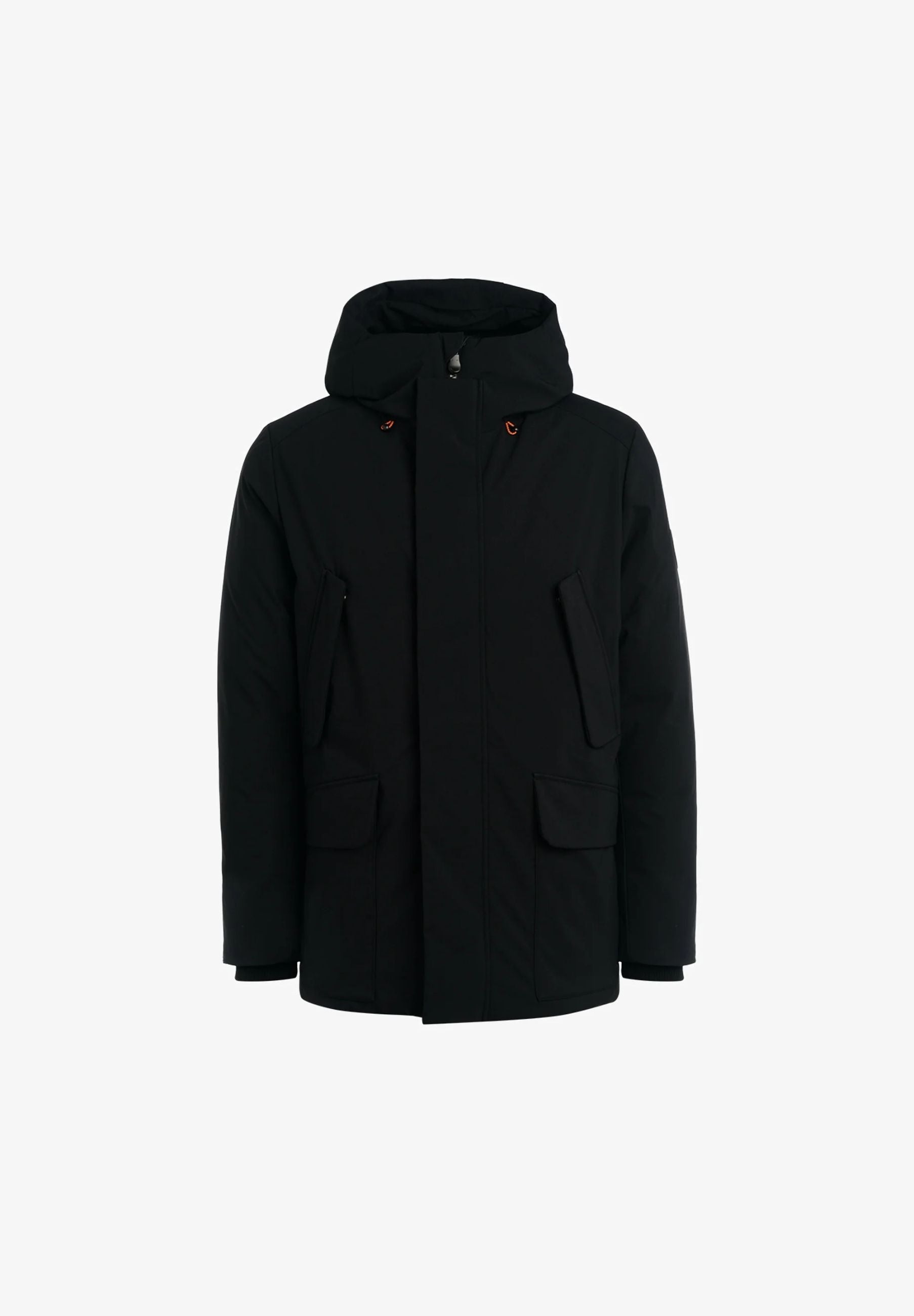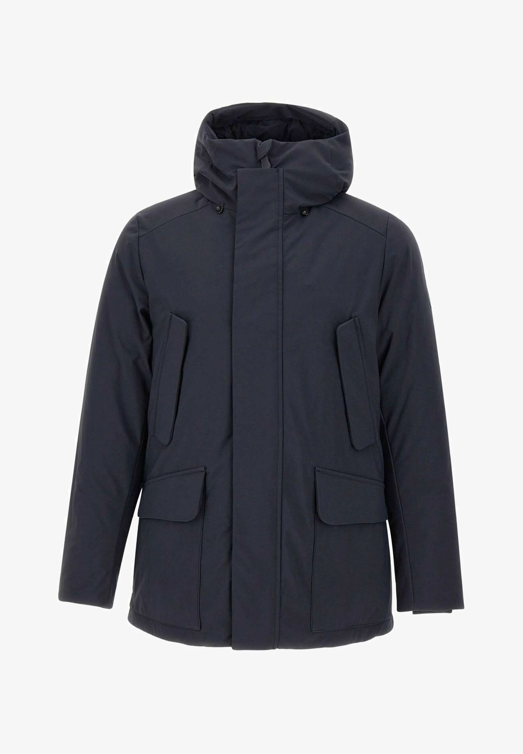 Progettato per sfidare ogni condizione atmosferica con stile animal-free il parka Elon � un ottimo compromesso tra comfort e funzionalit� . Caldo e imbottito ripara da freddo e vento grazie ai polsi in maglia e alla pratica patta con bottoni a pressione che copre la zip centrale. All'occorrenza il cappuccio regolabile pu�� essere trasformato in collo tramite una zip mentre una coulisse interna permette di regolare la vestibilit� in vita. Oltre a quelle interne il modello presenta tasche basse e tasche applicate foderate in flanella. Il logo Arctic rotondo � applicato su una manica