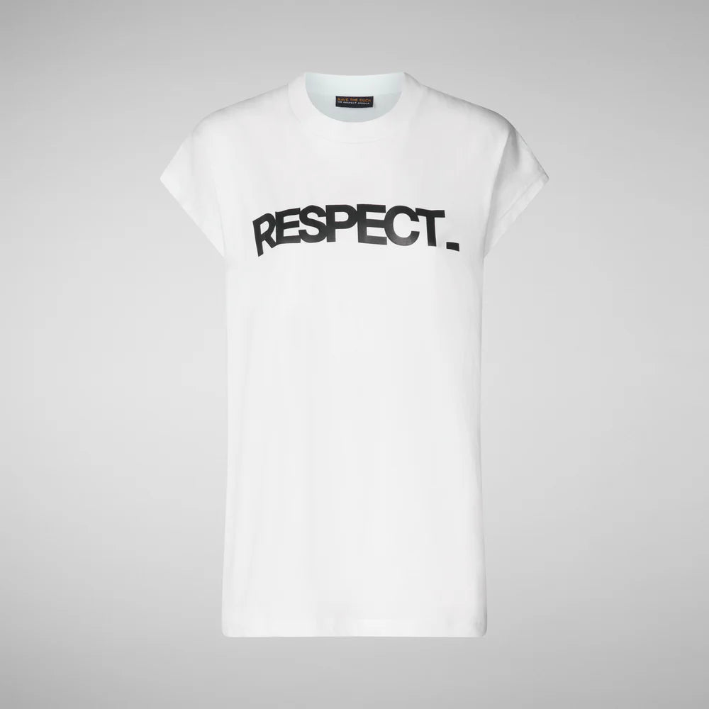 Porta il rispetto sempre con te con la T-Shirt Fiora. Realizzata in cotone organico con maniche corte e scollo tondo si presenta con il motivo RESPECT_ stampato sul petto e il logo Save The Duck sul retro. Il suo taglio classico la rende perfetta per il tuo look quotidiano.